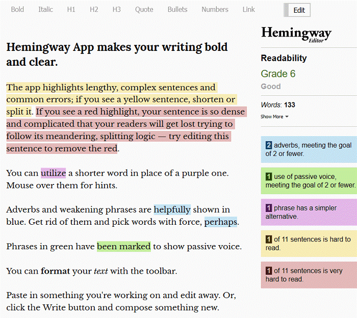 Application of Hemingway App while writing your content ensures quality and improvements. It checks complexity of your sentence, detects any grammatical error and catches run-on sentences.